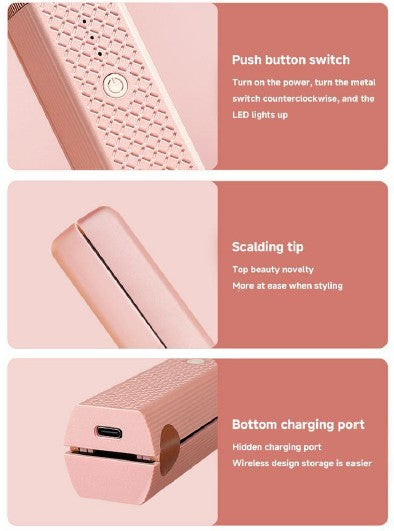 Perfecta para llevar en el bolso, el auto o de viaje, esta plancha portátil recargable Tipo-C permite retocar tu look en cualquier momento gracias a su diseño moderno sin cables. Es también una gran opción de regalo para celebraciones como Día de la Madre, Navidad o cumpleaños.