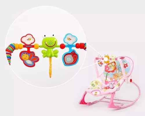 Silla Mecedora para Bebé multifuncional: el aliado perfecto para acompañar el crecimiento de tu pequeño. Diseñada con un armazón de bajo perfil, ideal para recién nacidos, esta mecedora se transforma en asiento con barra de juguetes removible y, más adelante, en mecedora para niños. Su diseño plegable y portátil la convierte en una opción práctica para cualquier espacio.